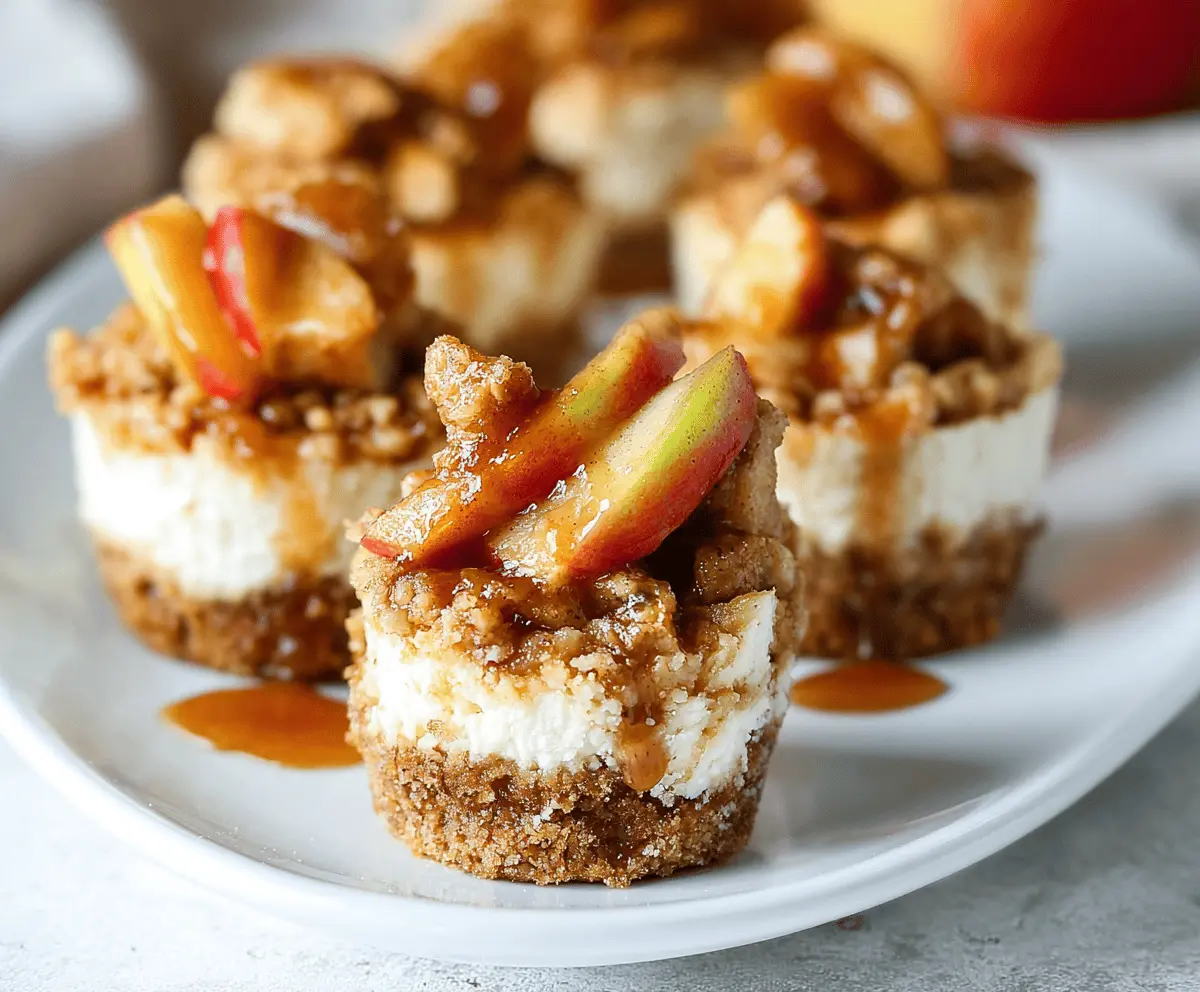 Once your cheesecake bites have chilled, spoon the apple mixture generously over the top of each mini cheesecake. You can also drizzle caramel sauce over them if you’d like a bit more sweetness.