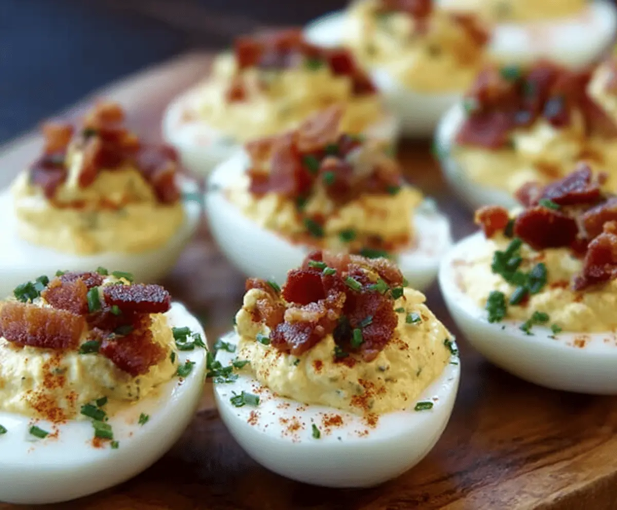 Bacon deviled eggs are a fun twist on a classic favorite! They’re creamy, flavorful, and packed with the delicious taste of crispy bacon. Perfect for any gathering!