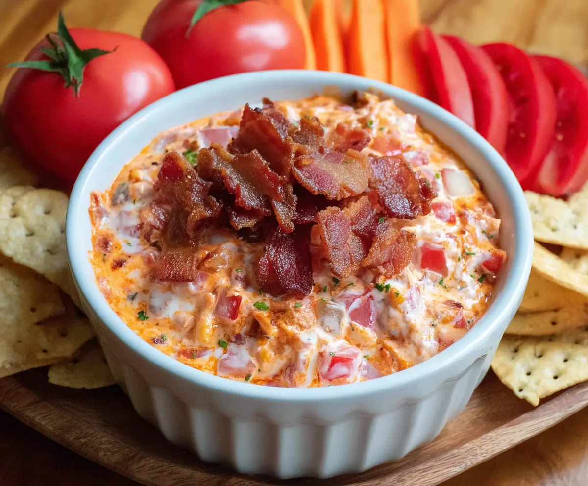 This yummy Bacon Tomato Dip is the perfect mix of crispy bacon and juicy tomatoes, blended together for a creamy treat. It’s great for dipping chips or veggies!