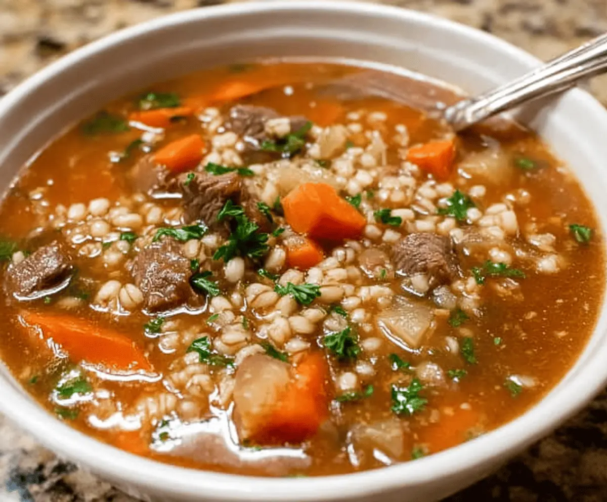 This hearty beef and barley soup is perfect for a chilly day! It’s filled with tender beef, soft barley, and delicious veggies that make each bite a delight.