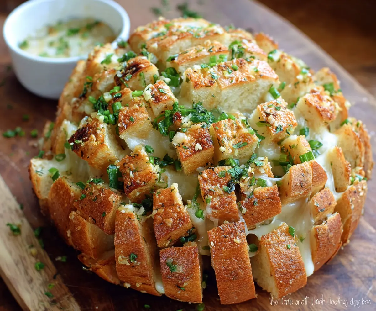 Once out of the oven, sprinkle the top with chopped fresh chives if you’re using them. Serve warm, and let everyone pull apart the “petals” for a delicious cheesy and garlicky treat!