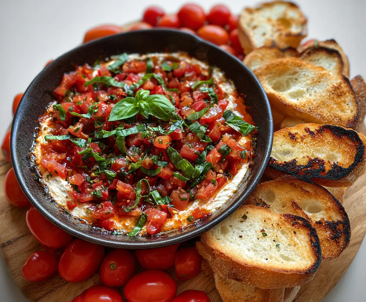 This Bruschetta Dip is a tasty mix of fresh tomatoes, basil, and garlic, all tossed together with a splash of olive oil. It’s perfect for parties or a cozy snack!