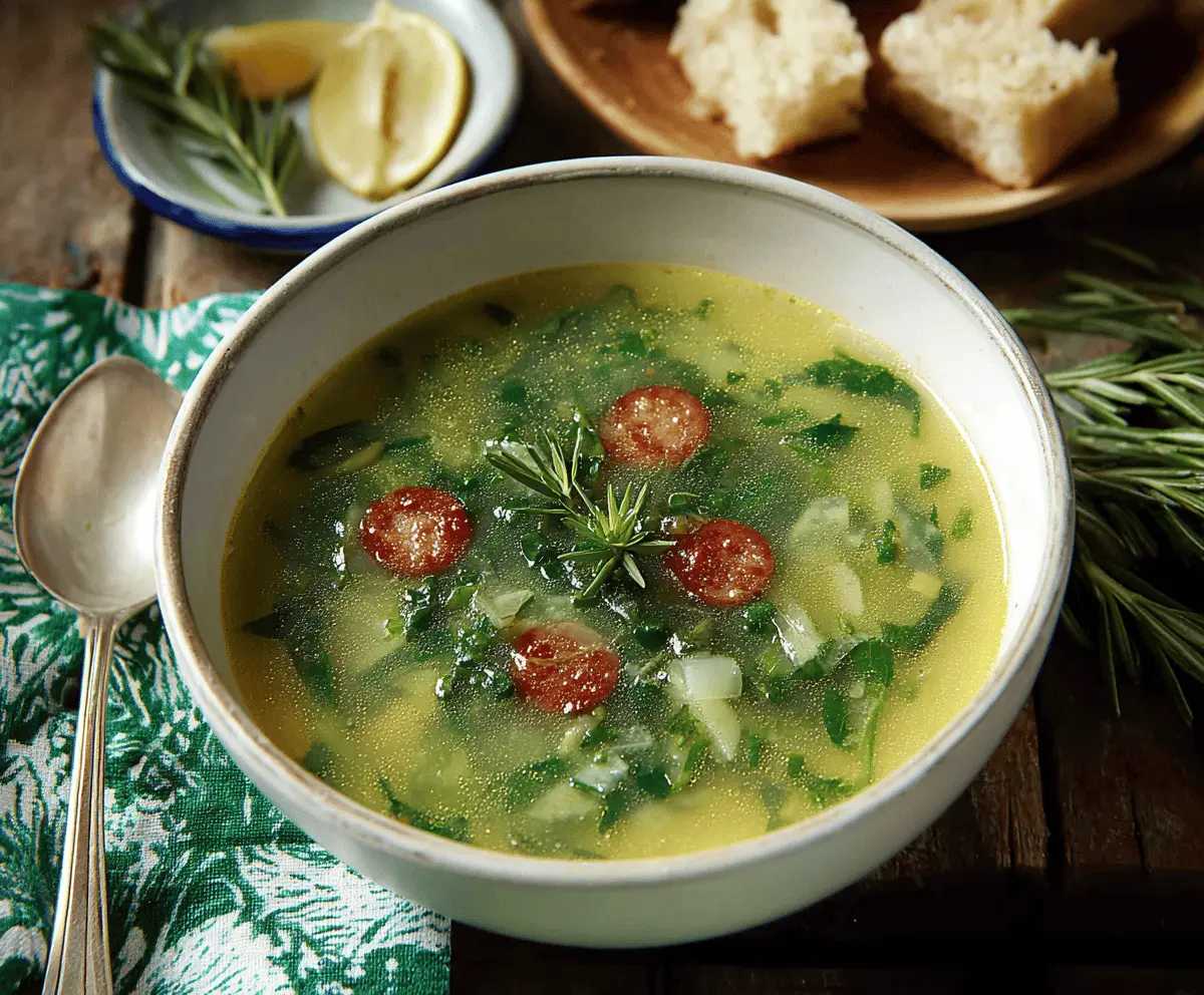 This classic Portuguese soup is both simple and comforting, with smooth potato broth, tender greens, and flavorful sausage slices that float on top. A humble yet satisfying meal—perfect for any occasion!