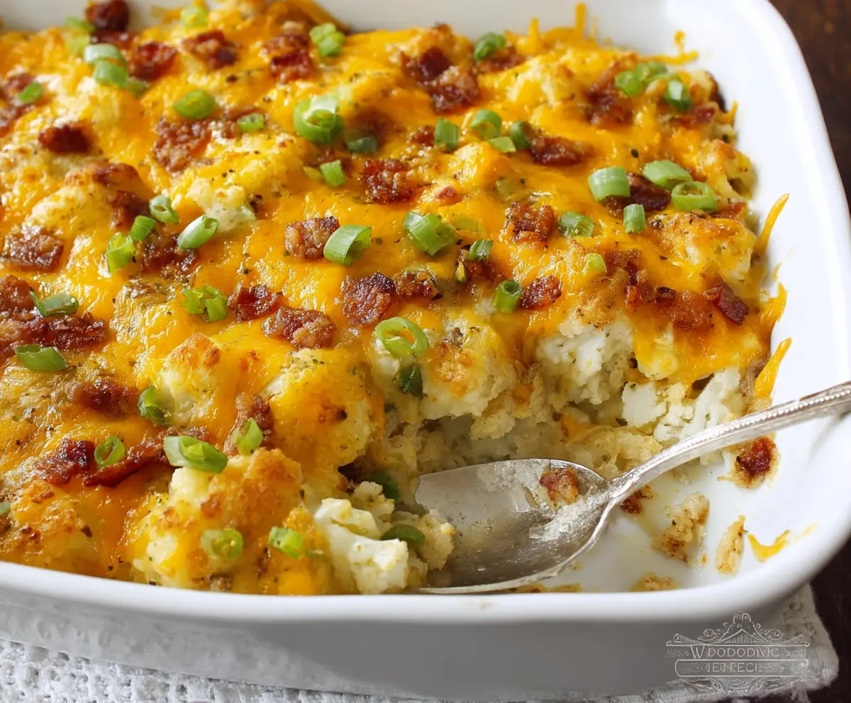 This Cheesy Loaded Cauliflower Casserole is a creamy, cheesy delight that everyone will love! It’s packed with tender cauliflower, lots of cheese, and delicious toppings.