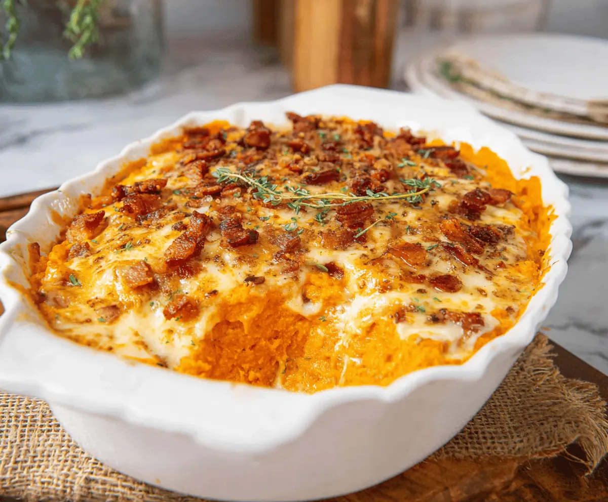 This Cheesy Sweet Potato Casserole is a cozy mix of sweet potatoes and creamy, cheesy goodness. Topped with a crispy layer, it’s a warm dish perfect for sharing!