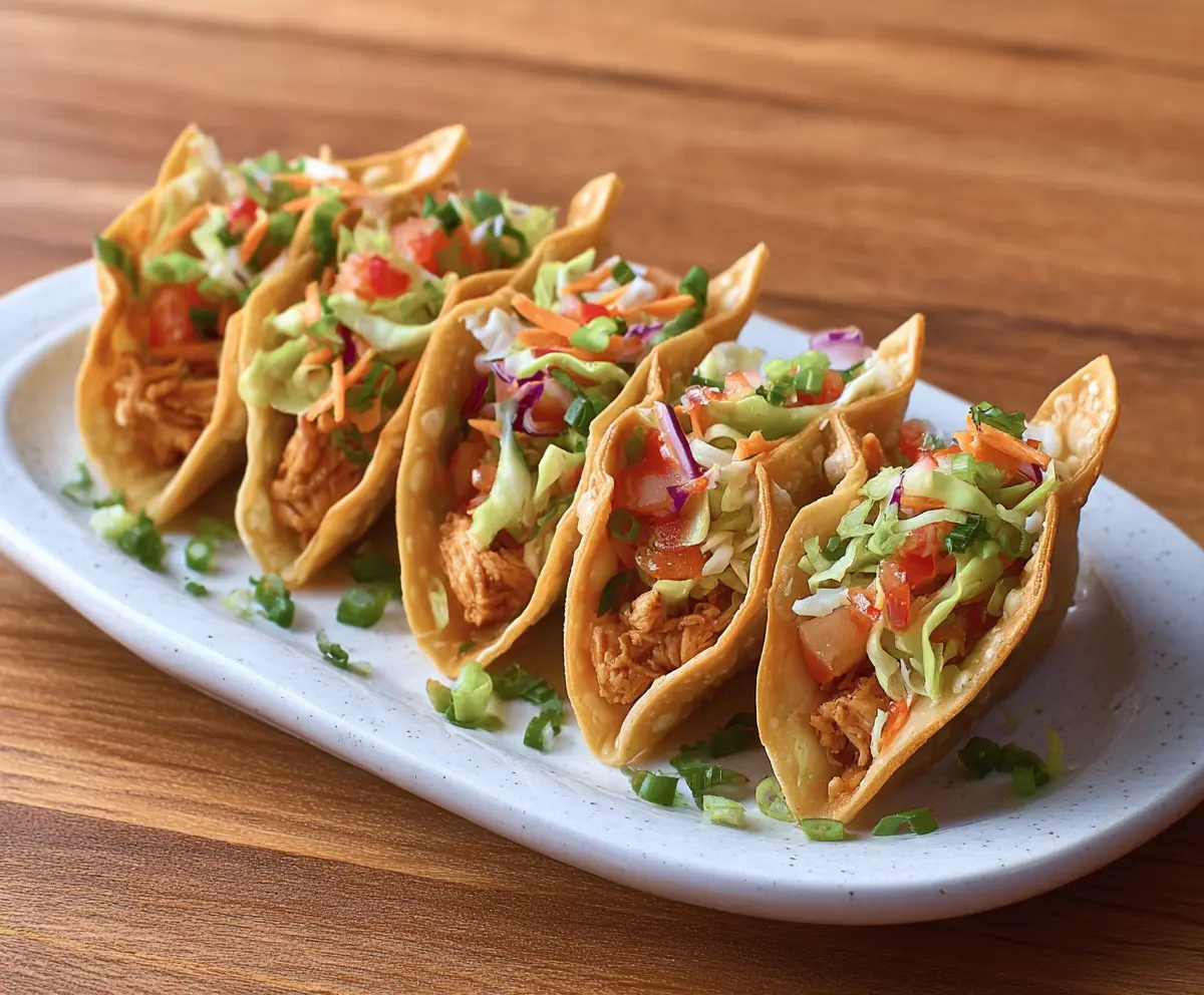 Enjoy your crispy, flavorful Chicken Wonton Tacos as a delicious fusion treat!