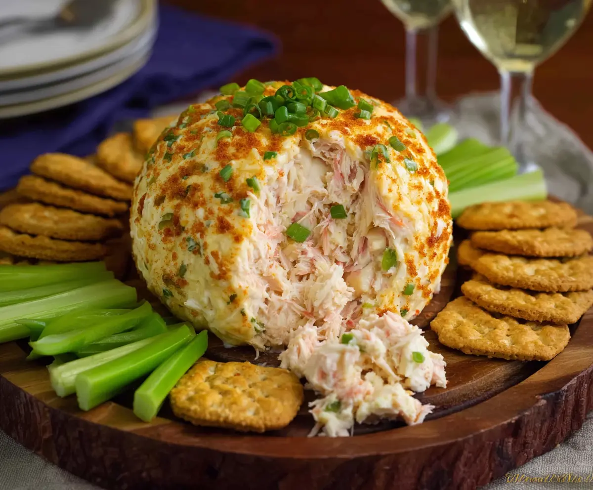 Enjoy your delicious Crab Dip Cheese Ball packed with flavor and goodness!