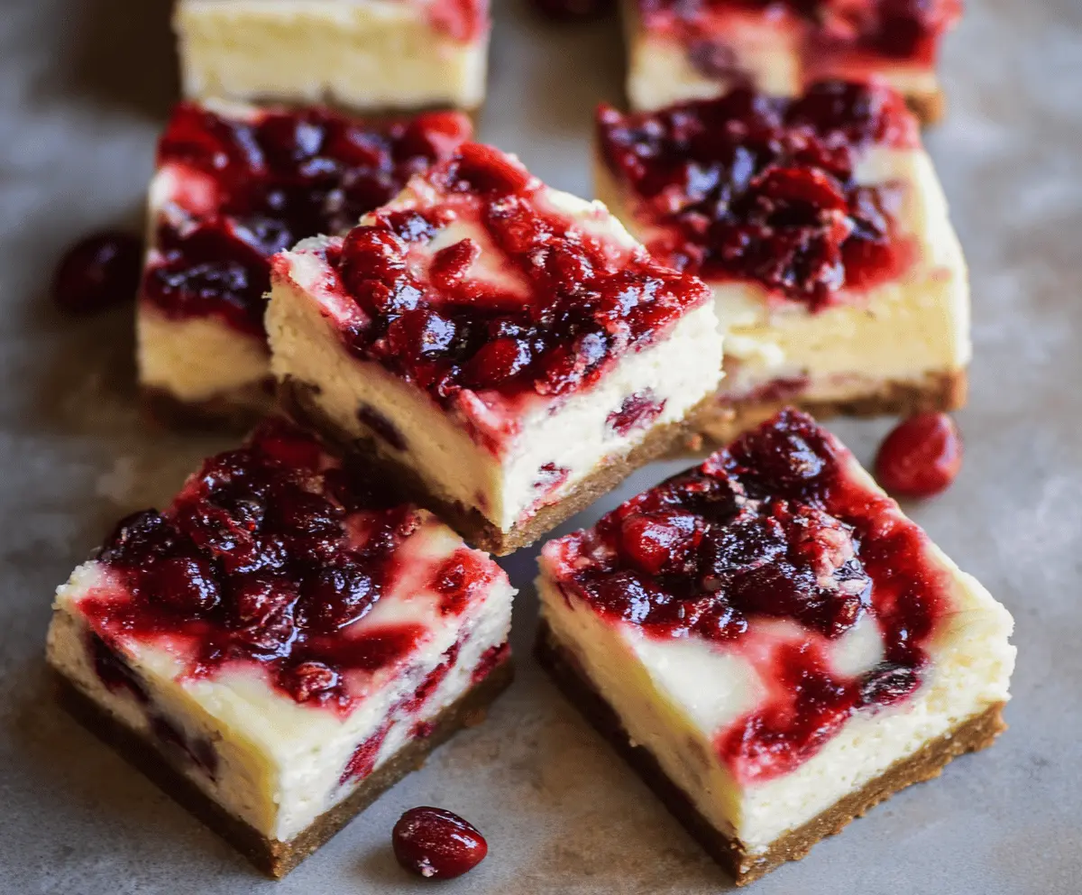 Enjoy these creamy, tangy cranberry cheesecake bars chilled for a delightful holiday or anytime treat! 😊