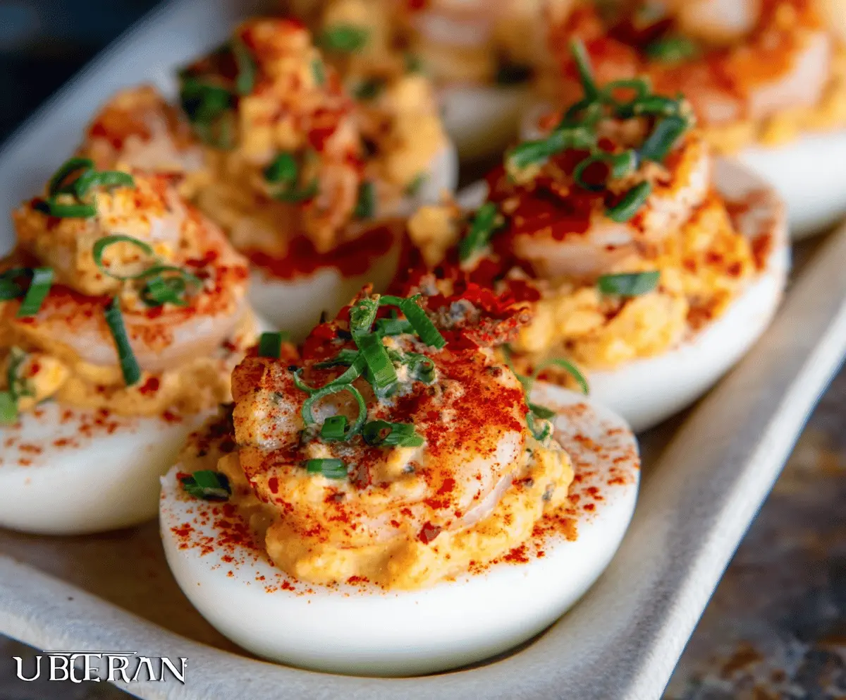 Enjoy this flavorful Southern-inspired appetizer that combines creamy deviled eggs with the sweet, spicy taste of crawfish! Perfect for gatherings or just a tasty snack at home.