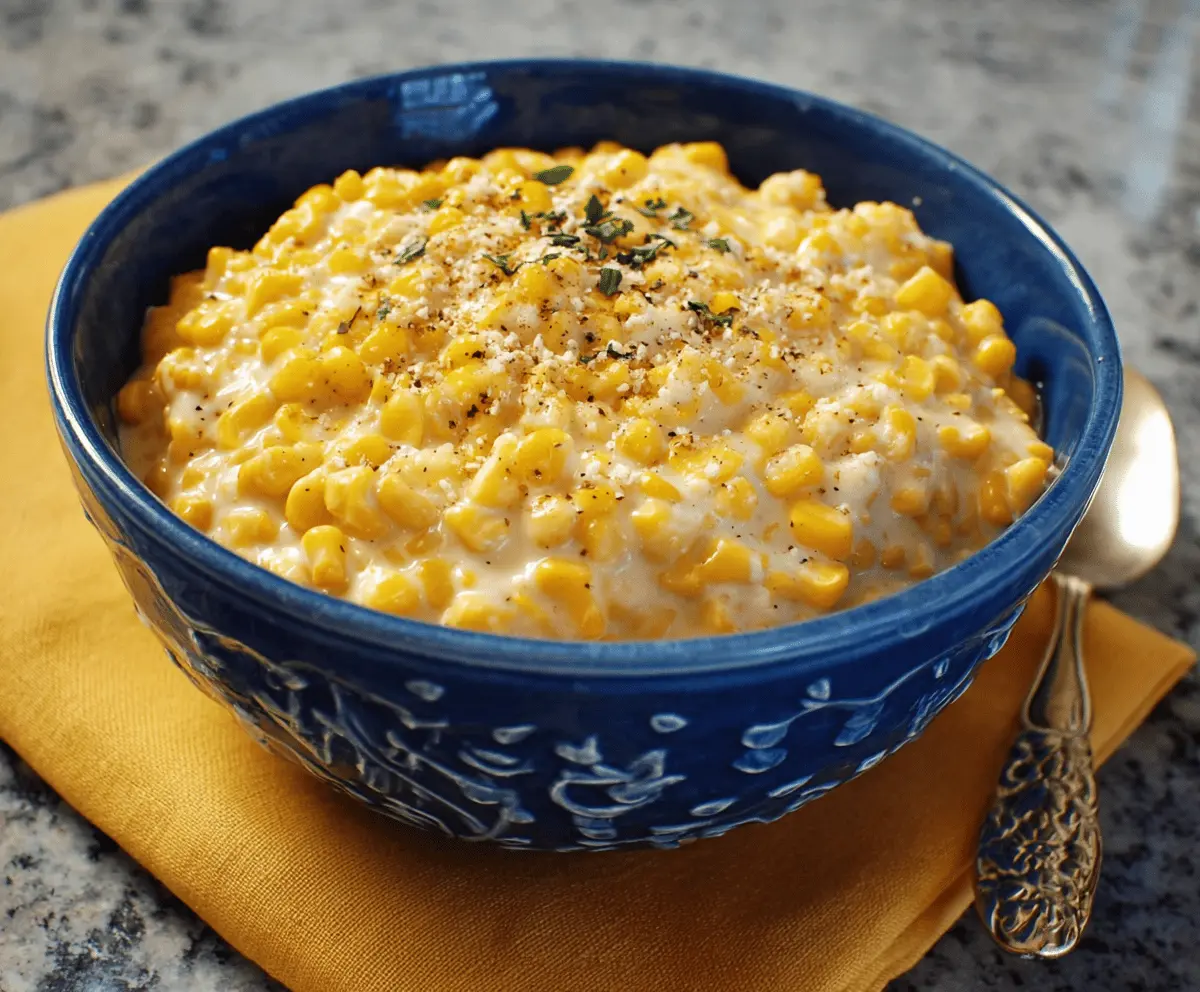 Before serving, sprinkle some fresh thyme leaves over the top if you’d like. This adds an aromatic touch to your delicious creamed corn. Serve it warm and enjoy!