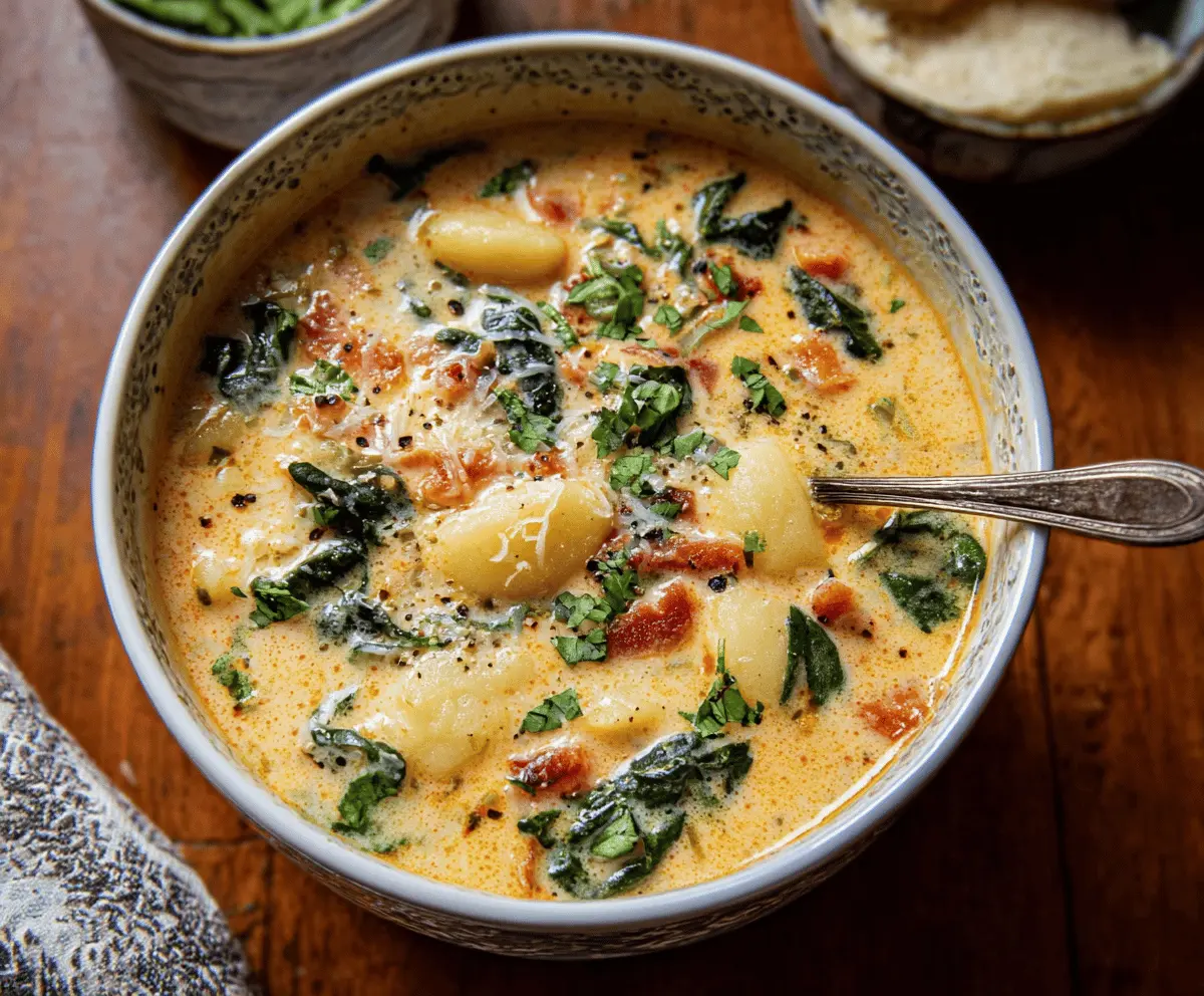 This creamy gnocchi soup is a warm hug in a bowl! With soft gnocchi, veggies, and a rich broth, it’s both comforting and filling. Perfect for chilly days!