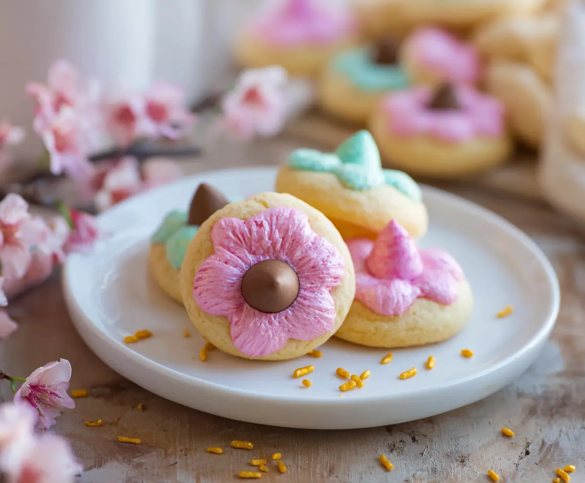 These Easter Blossom Cookies are soft, chewy, and bursting with colorful fun! The sweet dough is topped with a chocolate candy that makes each bite special and festive.