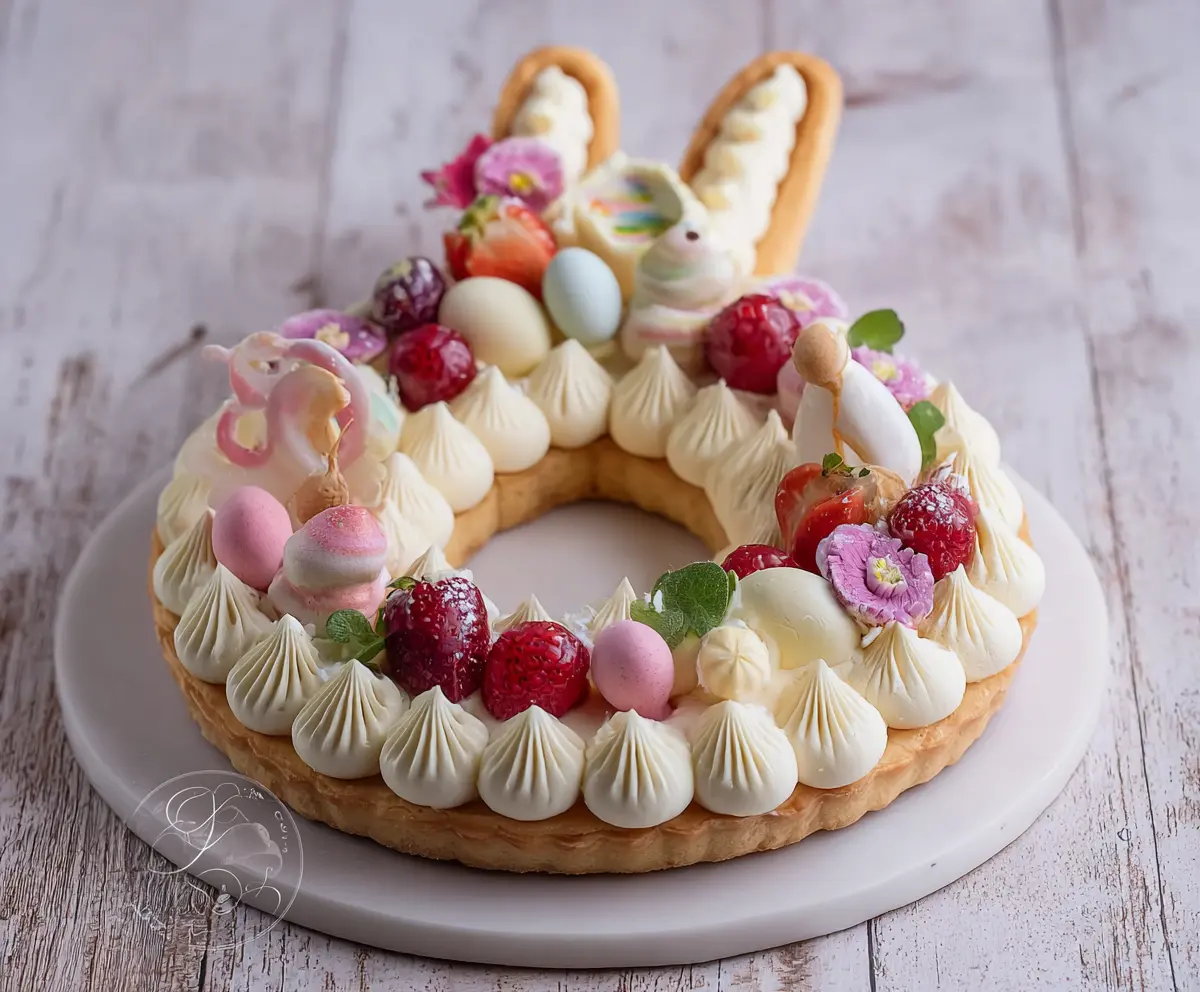 Enjoy your elegant and festive Easter Bunny Cream Tart!
