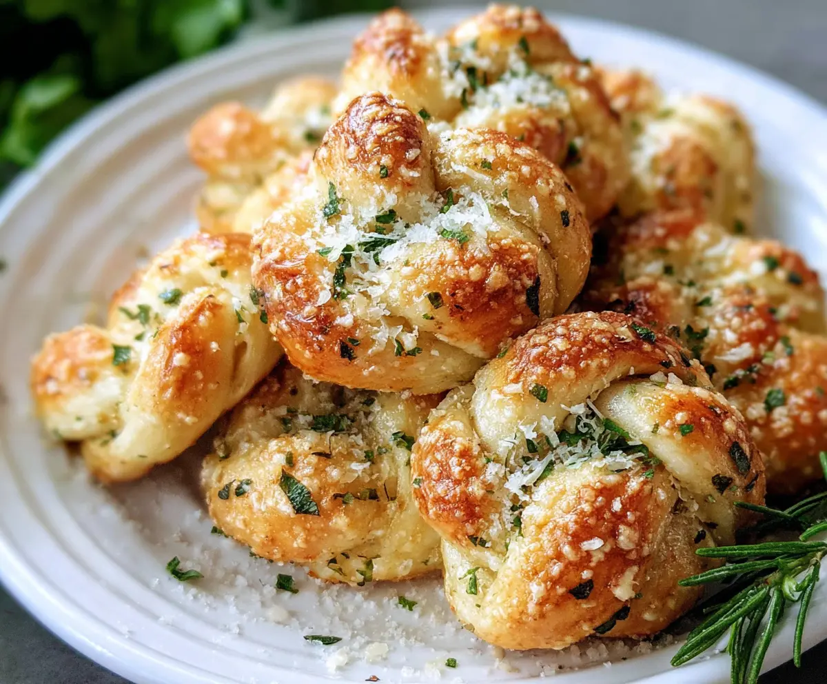 As soon as the knots come out of the oven, brush them again with any leftover garlic butter. While they’re still warm, sprinkle them generously with grated Parmesan cheese and chopped fresh parsley for a burst of flavor and color.