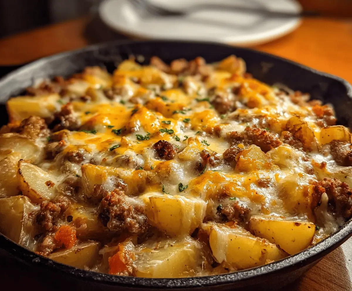 Easy One-Pan Cheesy Meat and Potato Skillet