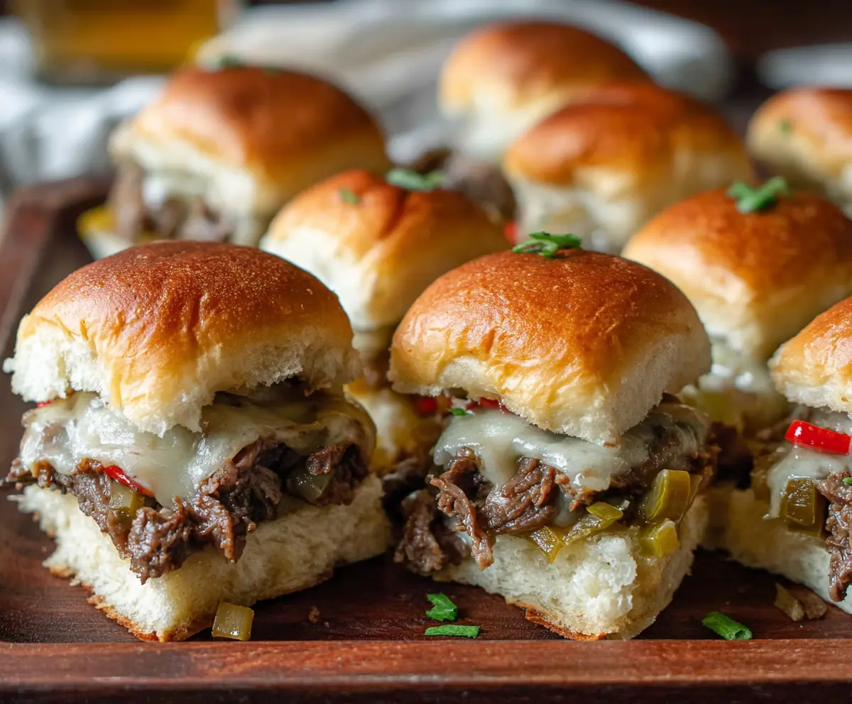 These sliders are a wonderful game-day snack that combines tender beef, melty cheese, and sweet peppers all nestled in fluffy rolls. They’re perfect for sharing or as a satisfying snack while watching the game!