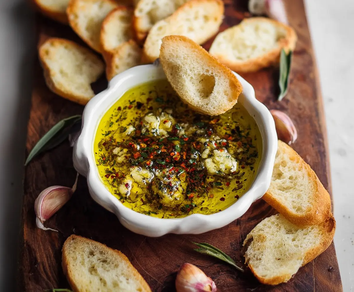 Delicious Garlic Olive Oil Dip