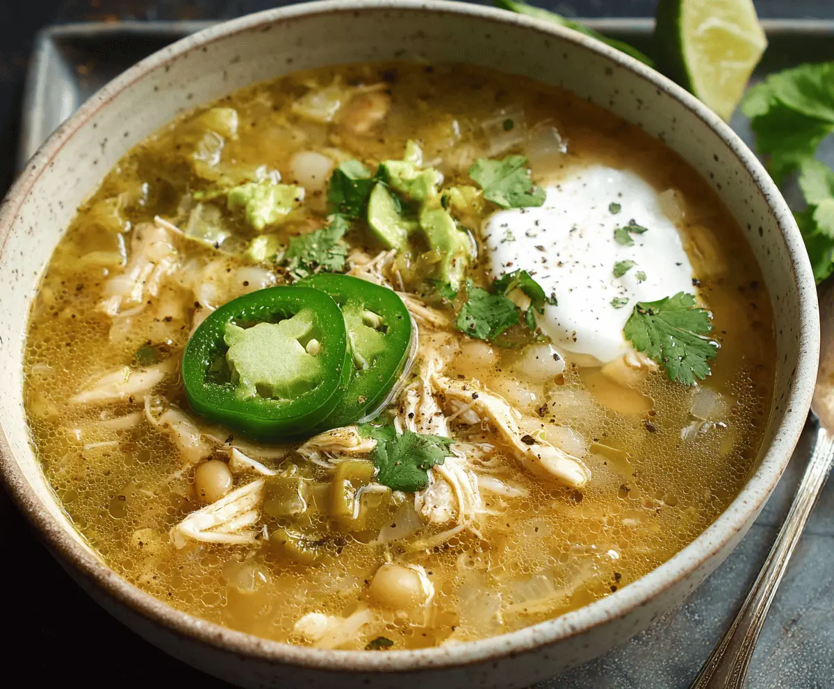 This Green Chile Chicken Soup is a warm hug in a bowl! Packed with tender chicken, zesty green chiles, and tasty spices, it’s perfect for chilly days.