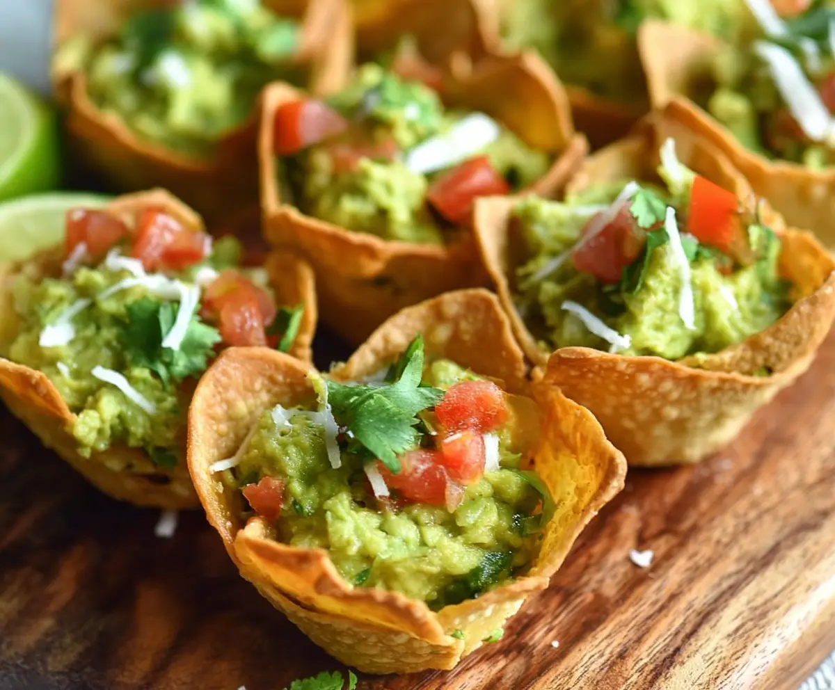 If you have leftovers, it’s best to store the guacamole and tortilla cups separately. Store the guacamole in an airtight container in the fridge for up to 2 days. The tortilla cups can be kept in an airtight container at room temperature if they haven’t been filled.