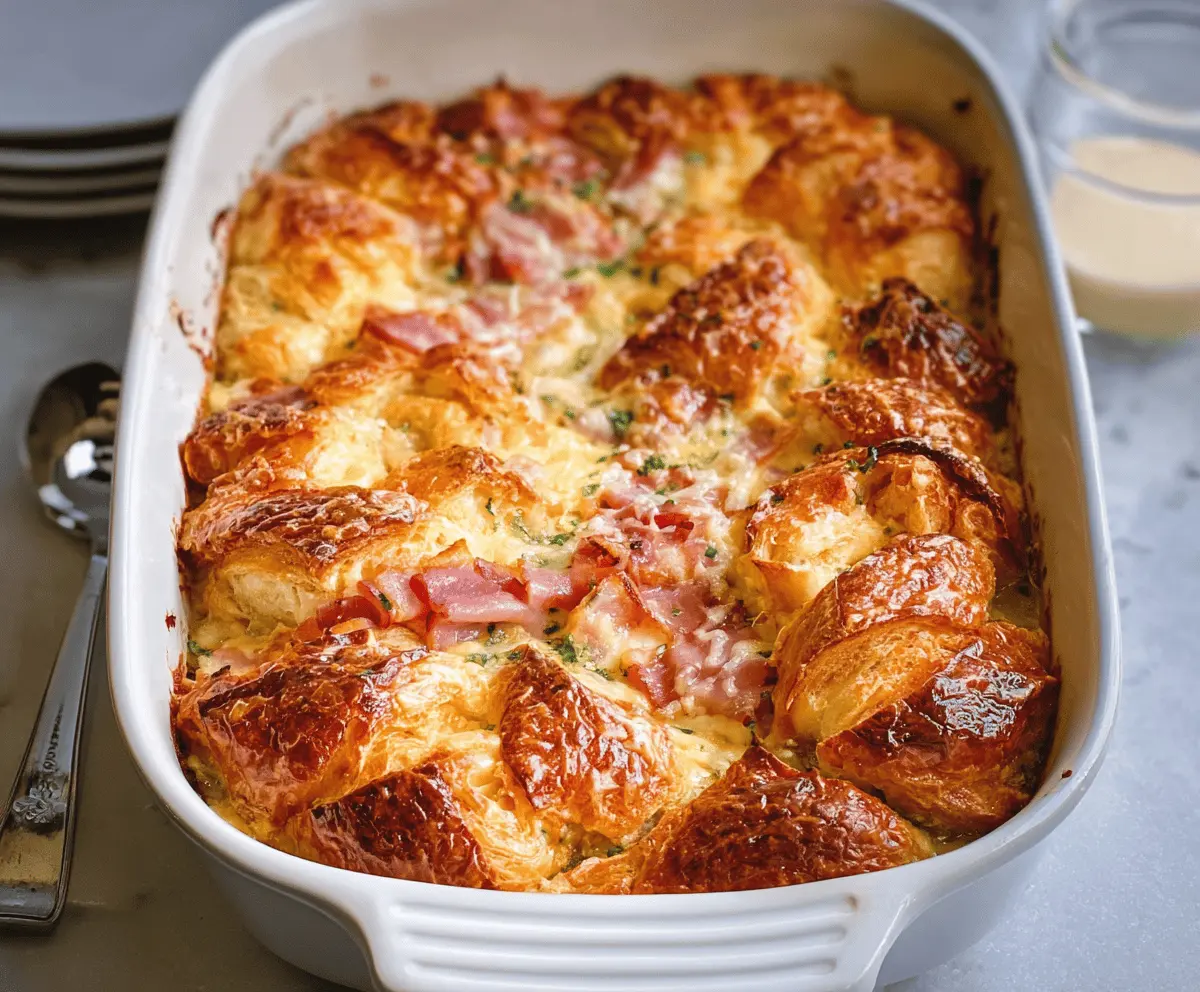 This Ham and Cheese Croissant Casserole is a tasty breakfast treat that’s super easy to whip up. Flaky croissants, savory ham, and gooey cheese create a warm, cozy dish!