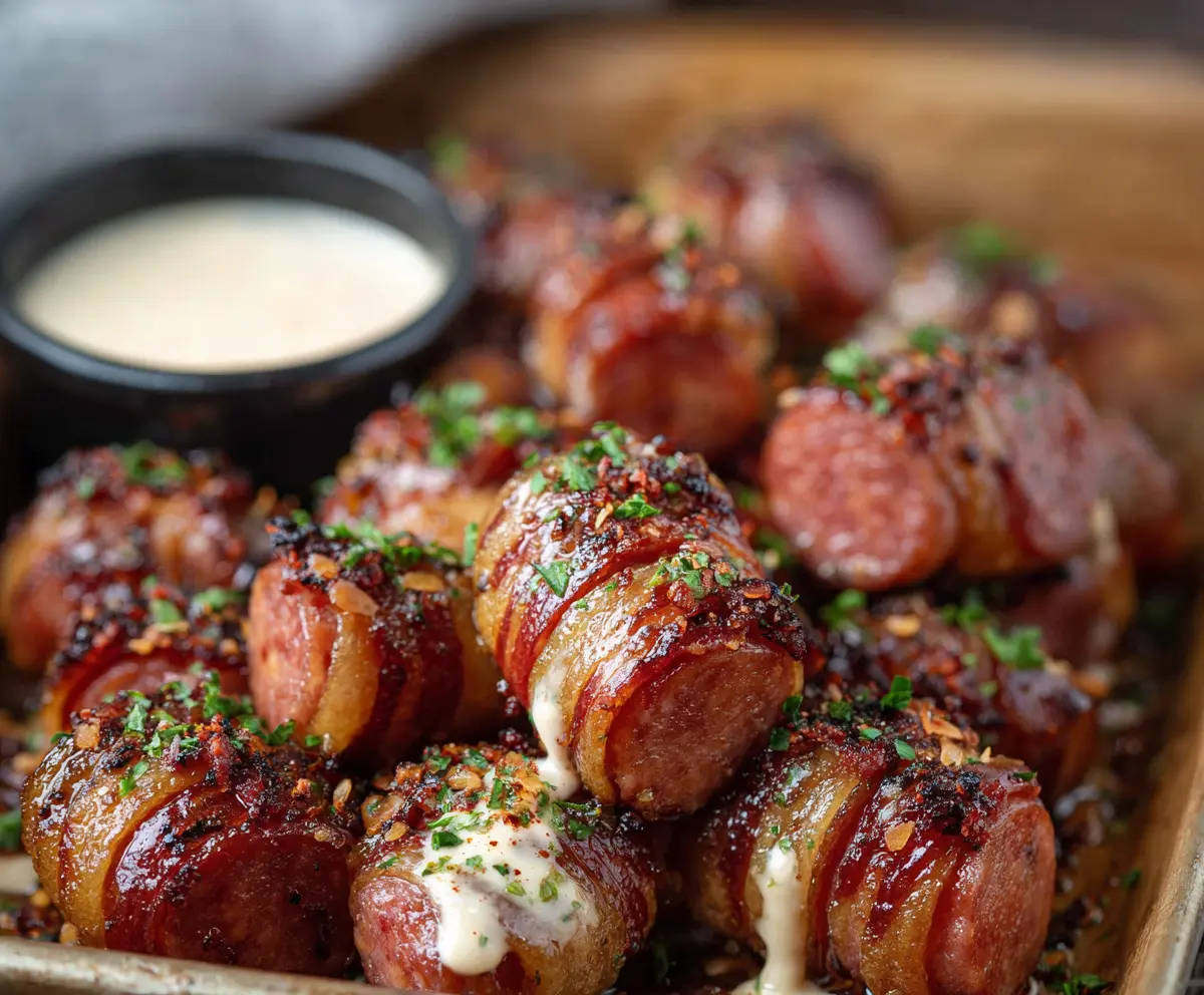 Sprinkle the seasoning blend generously over each bacon-wrapped kielbasa bite. This will add a delicious burst of flavor as they bake!