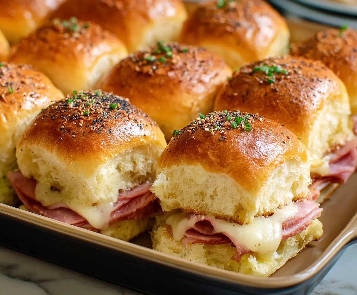 What I love about these sliders is how easy they are to make. Just layer in some ham and cheese, and pop them in the oven. They disappear quickly, so be ready to share—or not! 😉