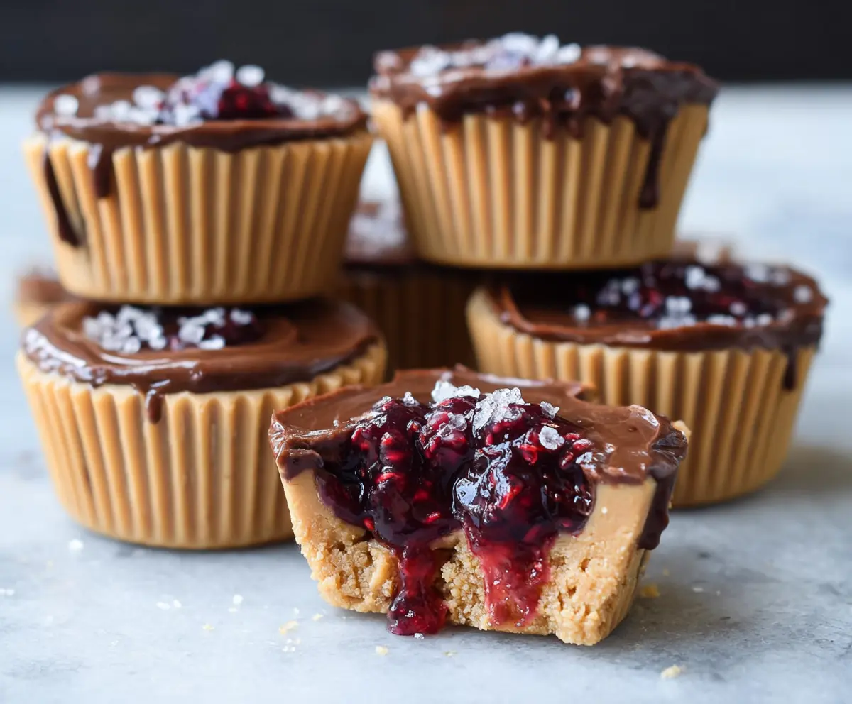 These delightful cups feature a creamy peanut butter base, a burst of jelly in the center, and a satisfying chocolate topping—perfect for indulging without the guilt!