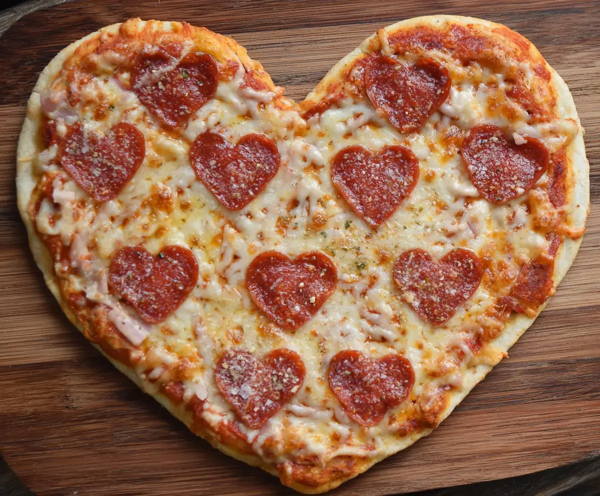Enjoy your charming and delicious heart-shaped pizza, perfect for special occasions or just sharing some pizza love!