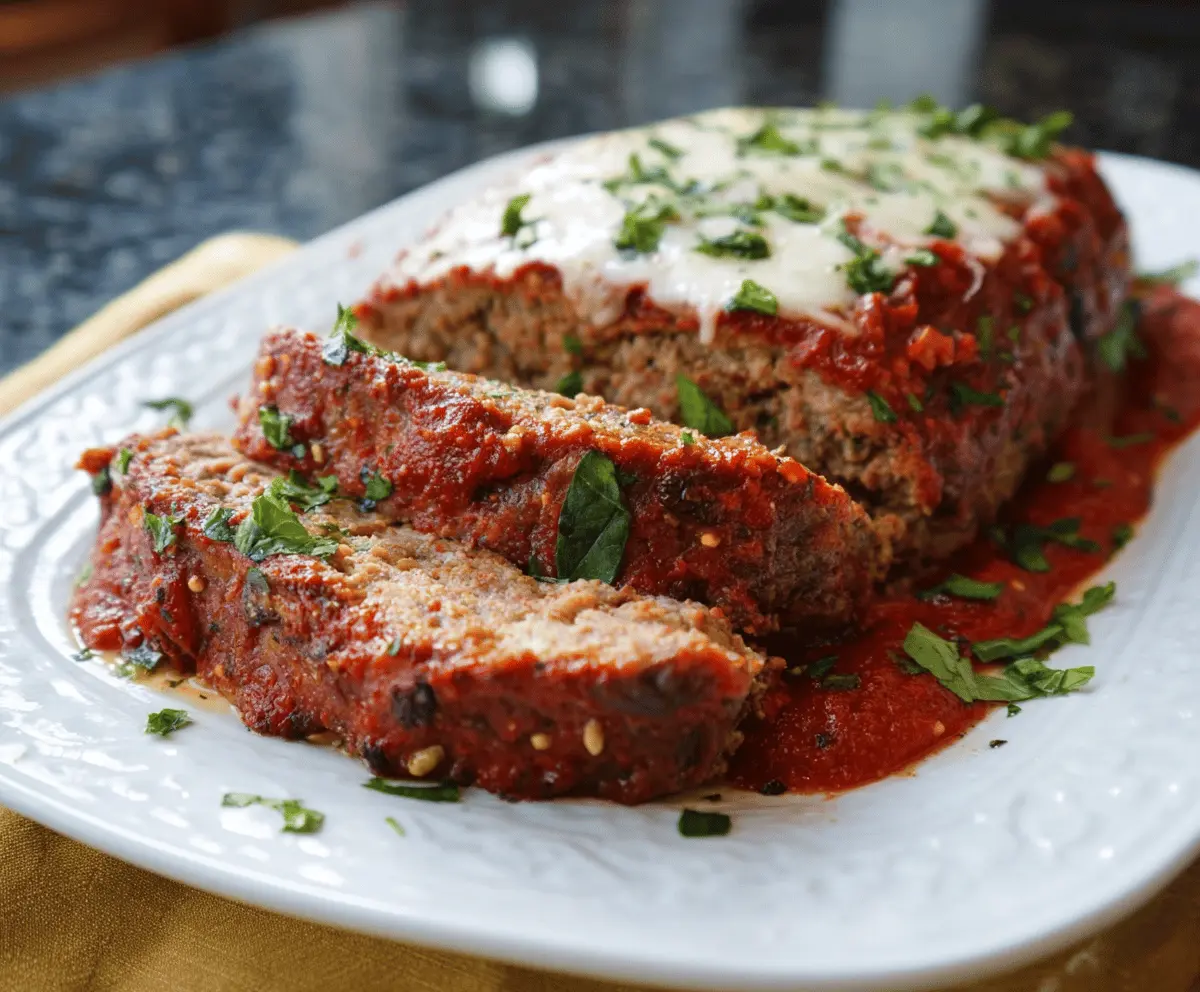 Once done, take the loaf out of the oven and let it sit for 10 minutes before slicing. This helps the juices set in. When you’re ready to serve, garnish with fresh chopped basil or parsley and drizzle a bit more marinara sauce over the top if you like!