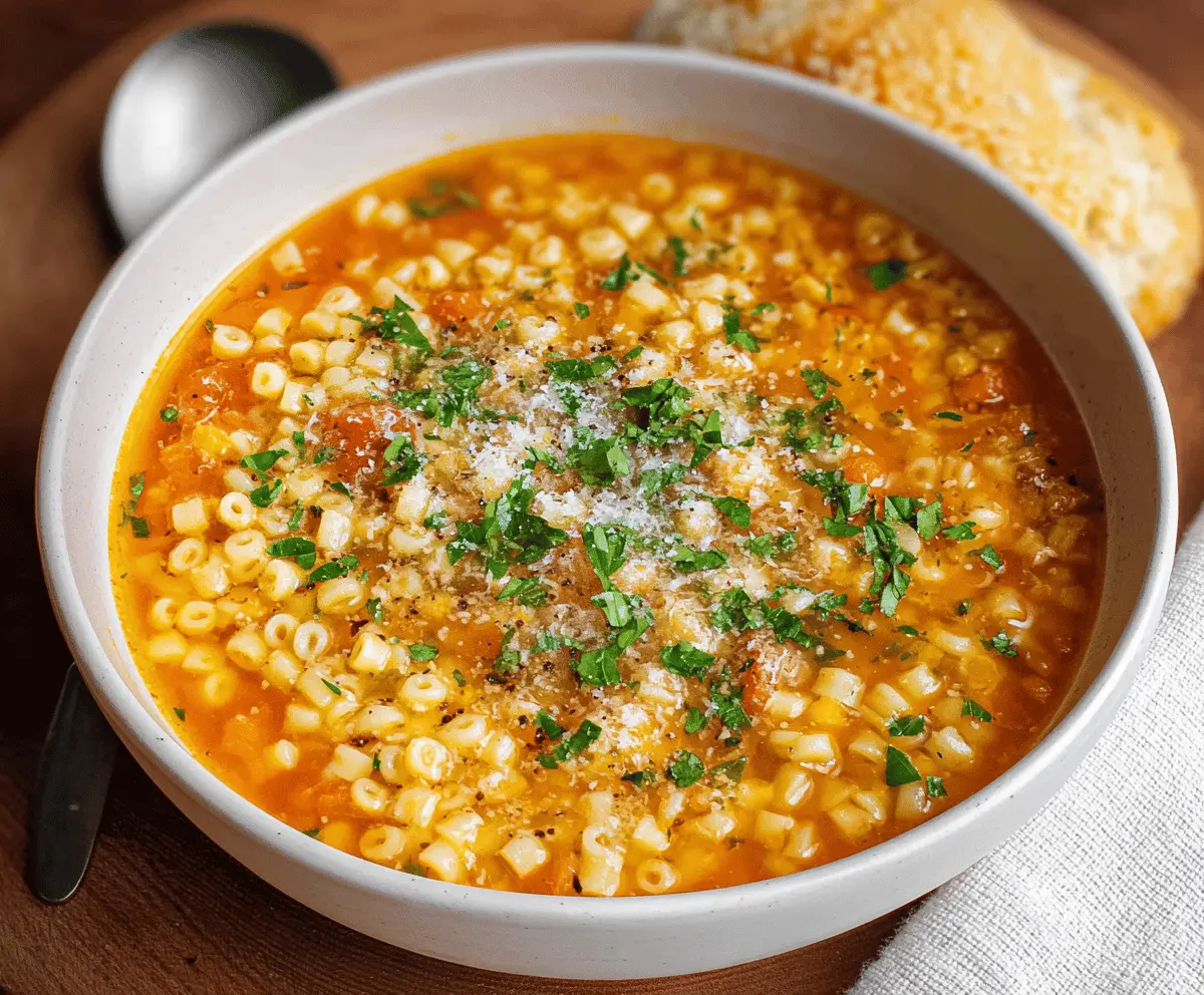 I love how quick it is to make—just a few ingredients and you’re all set! Plus, it’s like a hug in a bowl. Don’t forget the Parmesan on top for extra yumminess! 🧀