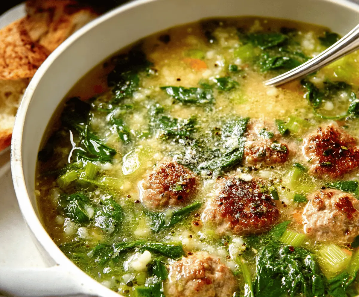 Italian Wedding Soup is a warm and cozy dish that features tiny meatballs, fresh greens, and tasty pasta in a flavorful broth. It’s like a hug in a bowl!