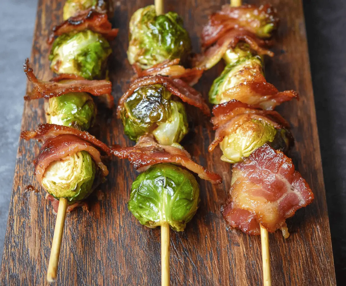 These Maple Bacon Brussels Sprout Skewers are a tasty treat that brings together crispy bacon and roasted Brussels sprouts with a sweet maple glaze. Perfect for any gathering!
