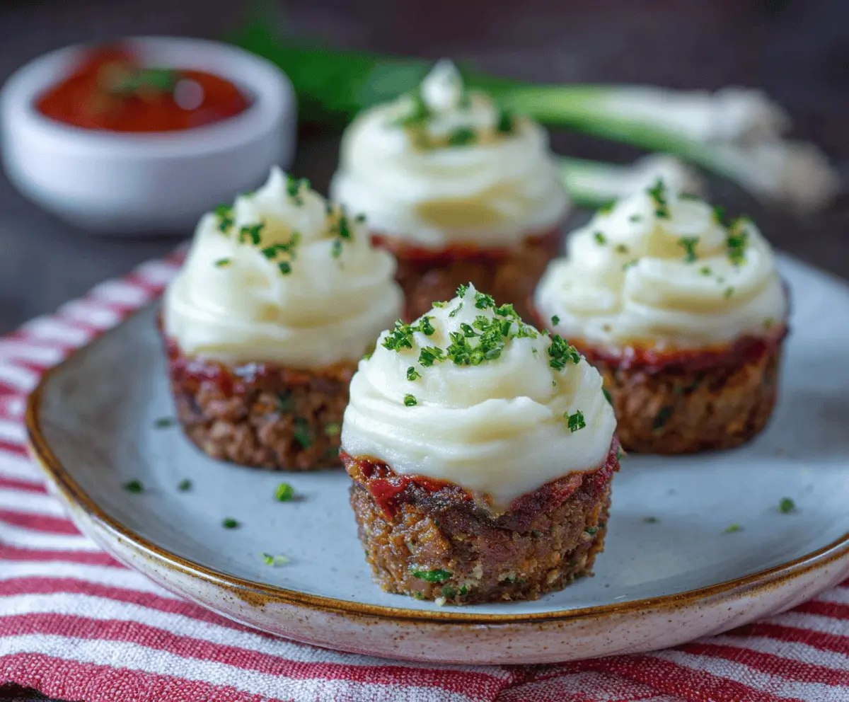 Enjoy your adorable and delicious meatloaf cupcakes topped with creamy mashed potato frosting! They’re a hit for sure! 🎉