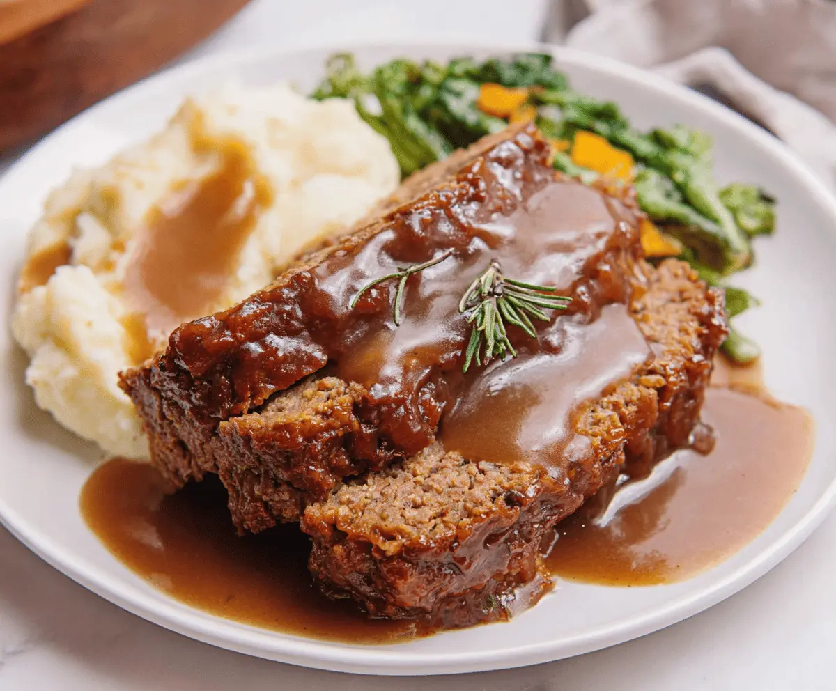This classic meatloaf topped with cozy brown gravy is like a warm hug on a plate! It’s made with ground meat, breadcrumbs, and spices, making each bite so tasty.