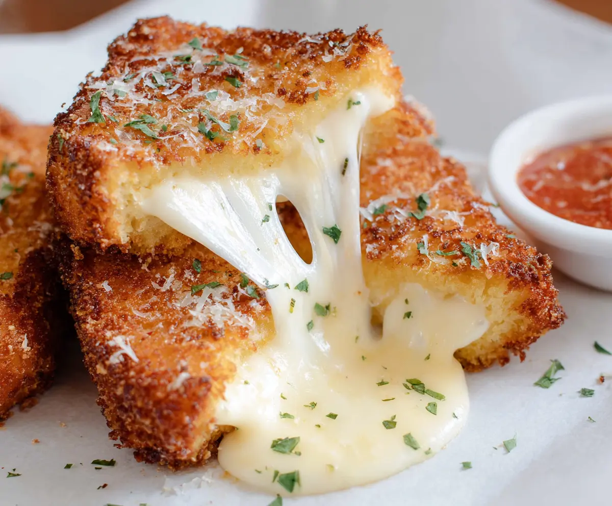This dish is super easy to make; just dip in egg, fry until golden, and enjoy. I love serving it with a side of marinara sauce for dipping. It’s a hit every time! 🧀🥪