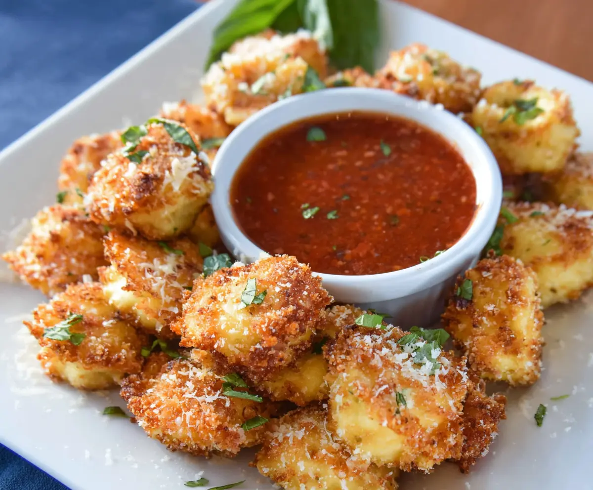 This delightful dish takes about 20-25 minutes of prep time and another 10-15 minutes for frying. So, you’ll be enjoying your crunchy Parmesan crusted tortellini bites in about 40 minutes!