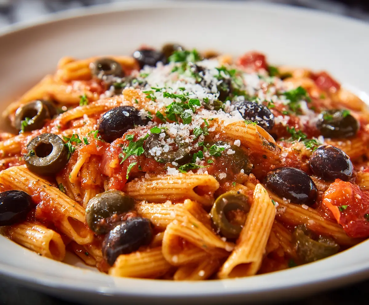 Pasta Puttanesca is a quick and tasty dish bursting with flavors! Enjoy the rich taste of tomatoes, olives, and capers, all mixed with pasta for a wonderful meal.