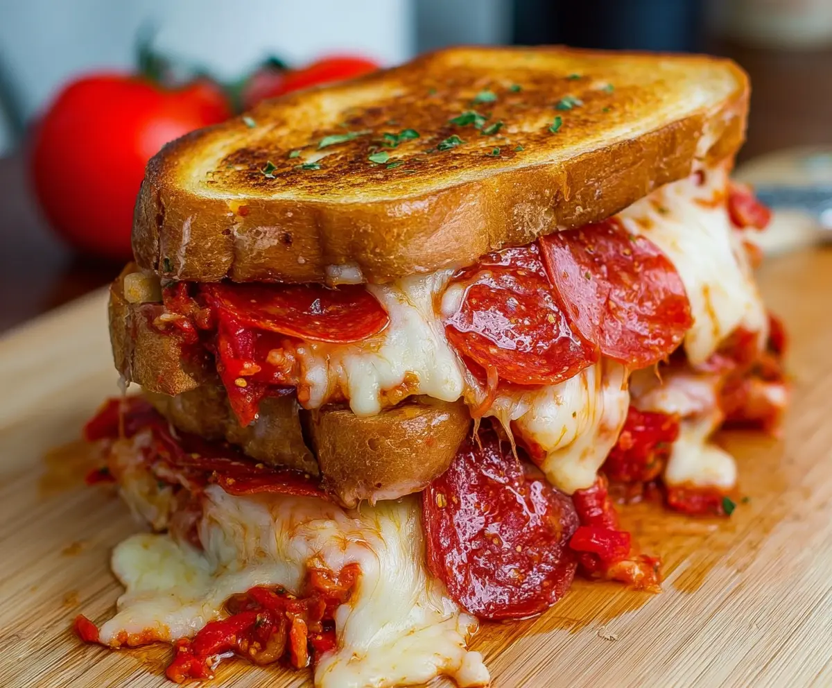 This tasty creation combines the best of both worlds—pizza and grilled cheese—into one amazing sandwich!