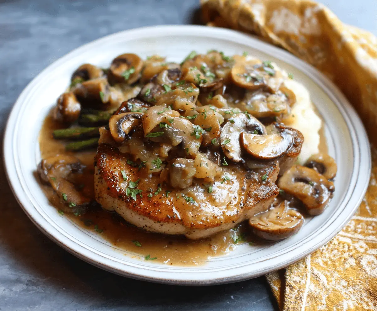 Plate the pork chops topped with the hearty mushroom gravy. Serve alongside mashed potatoes or rice, and add some steamed asparagus or green beans for a colorful touch. Don’t forget to sprinkle some fresh parsley on top for a lovely presentation!