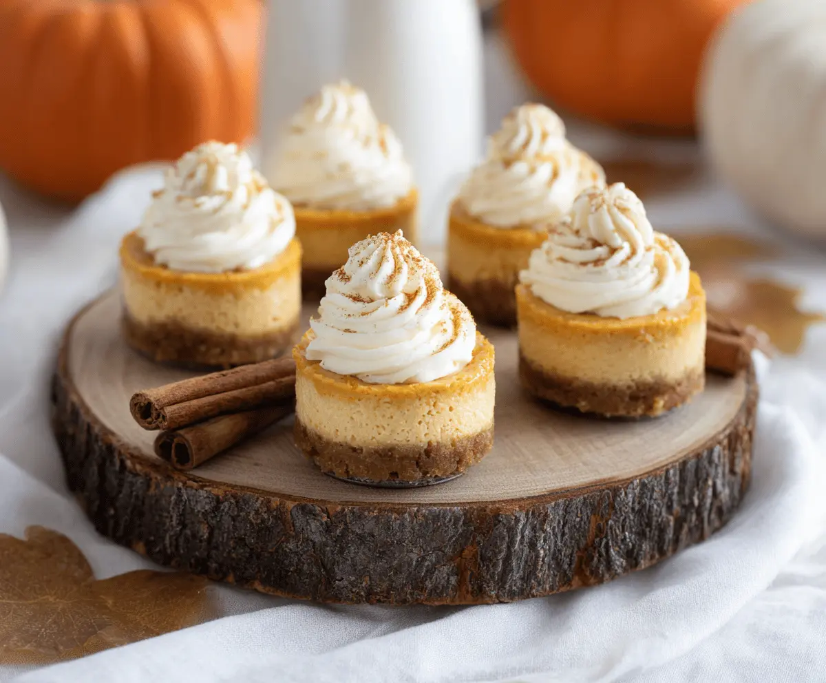 These Pumpkin Mini Cheesecakes are perfect little treats for fall! With a creamy pumpkin filling and a tasty crust, they pack all the flavor of pumpkin pie in a cute, bite-sized form.