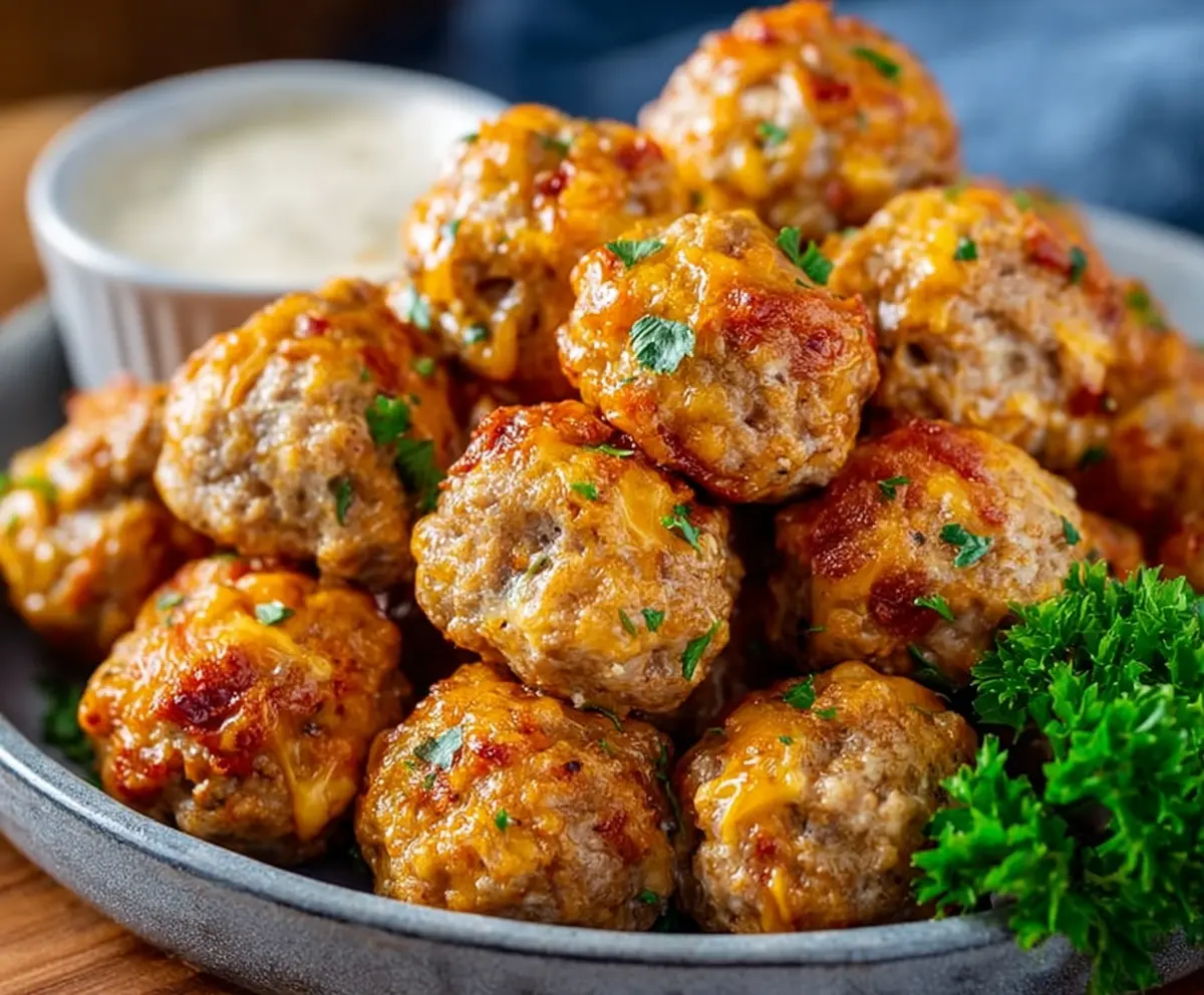 These sausage balls are juicy with crispy edges, and melty cheese on the inside—a delightful treat that everyone will love. Enjoy every bite! 😊