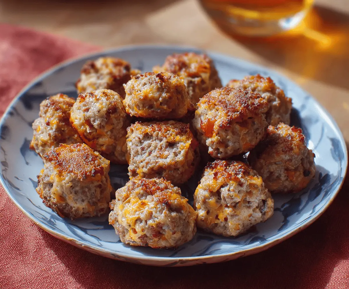 Store leftover sausage cheese balls in an airtight container in the fridge for up to 3 days. To reheat, place them in the microwave for 30 seconds to 1 minute or warm them in the oven at 350°F for about 10-15 minutes until heated through.