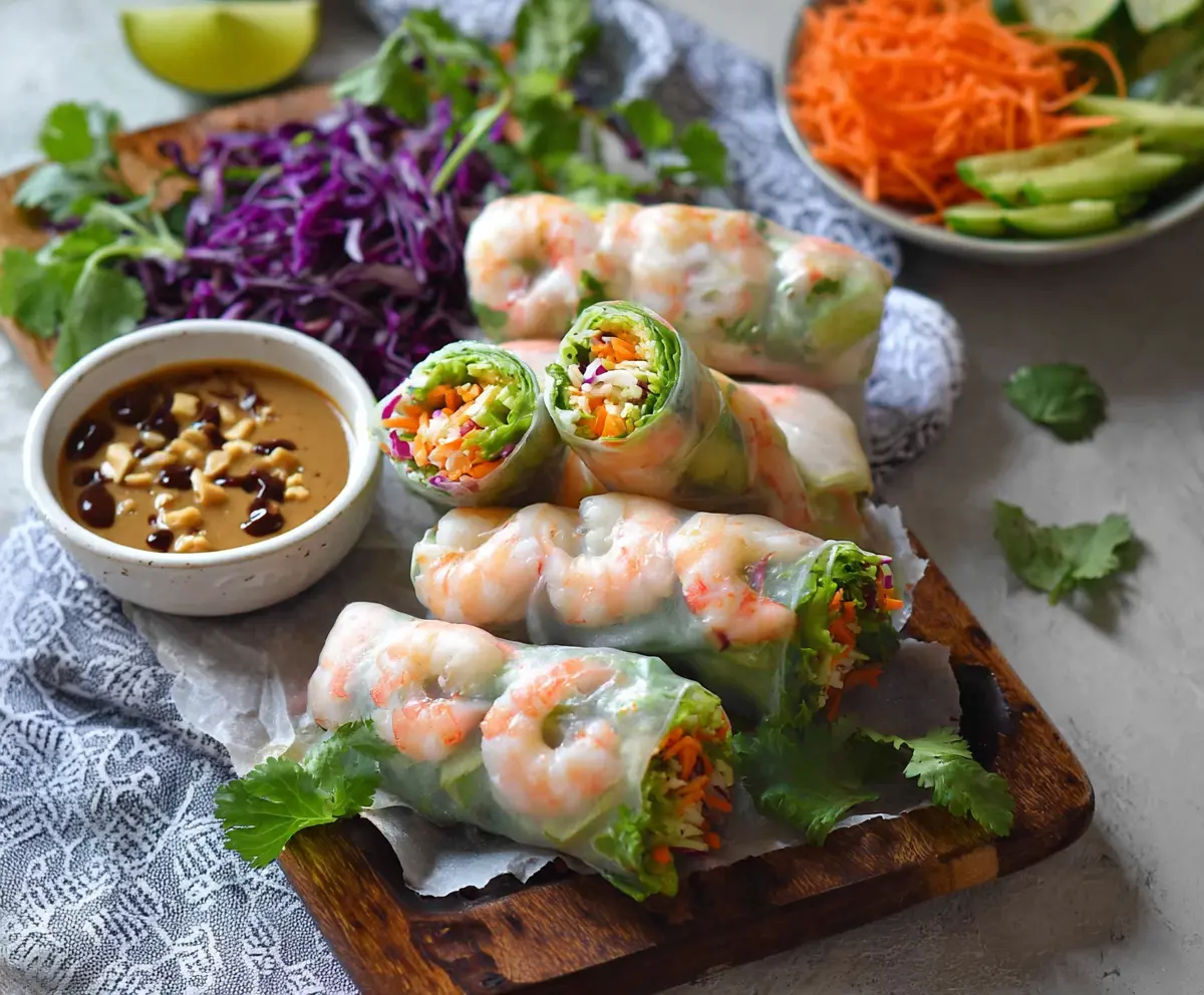 These Shrimp Rice Paper Rolls are fresh and fun to eat! Stuffed with juicy shrimp, crisp veggies, and wrapped in soft rice paper, they’re perfect for a light meal or snack.