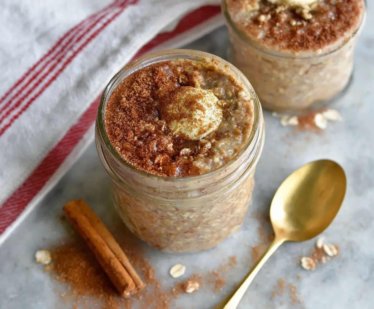 Snickerdoodle Overnight Oats are a tasty, easy breakfast option! They combine rolled oats, cinnamon, and a splash of vanilla, giving a sweet and cozy flavor.