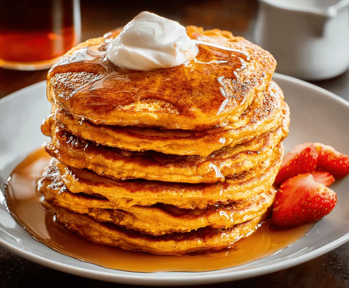 Serve your sweet potato pancakes warm with optional toppings like whipped cream, a drizzle of maple syrup, or a light dusting of powdered sugar. Enjoy this delightful twist on your regular pancakes!