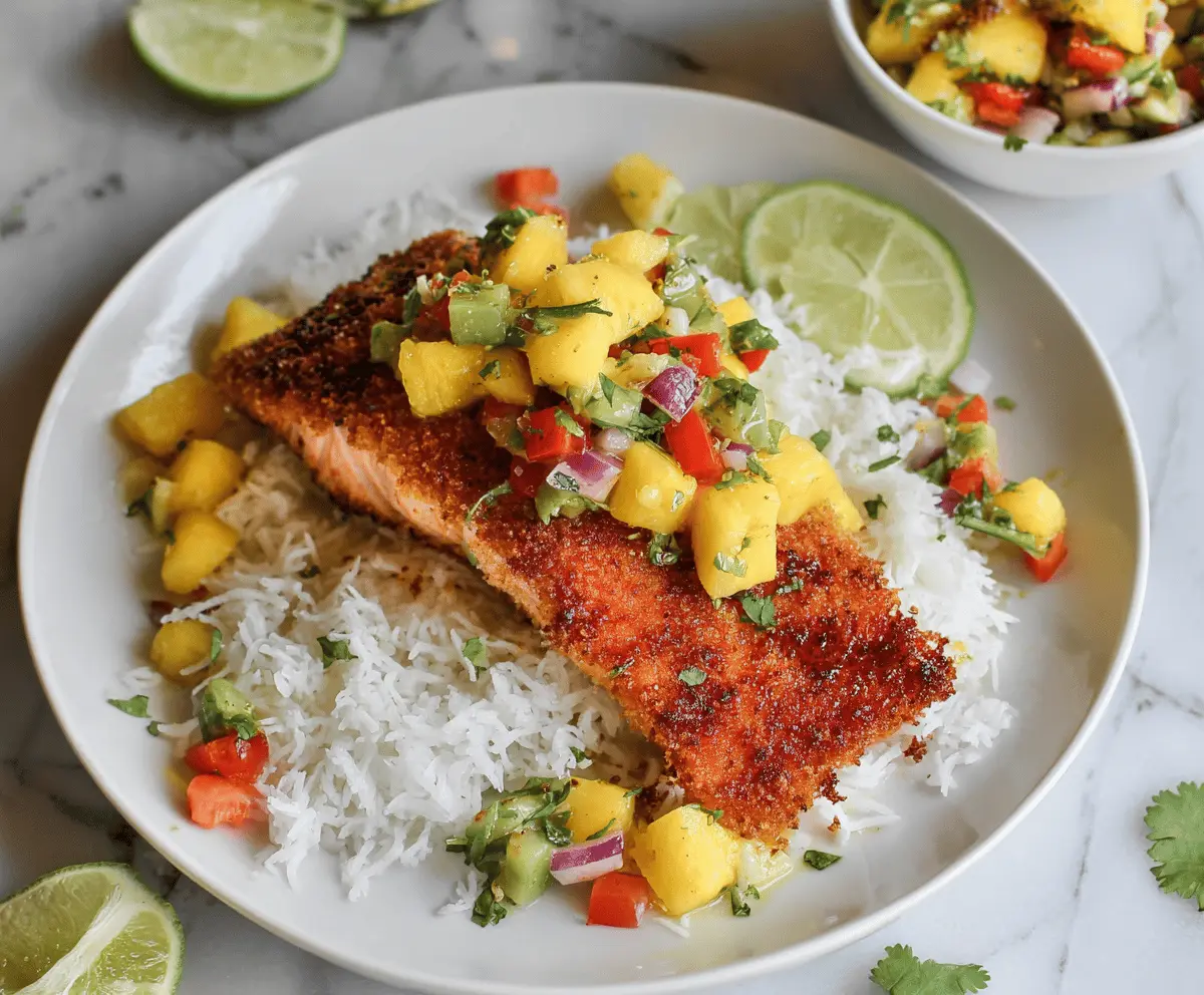 Tropical Coconut Crusted Salmon With Pineapple Salsa