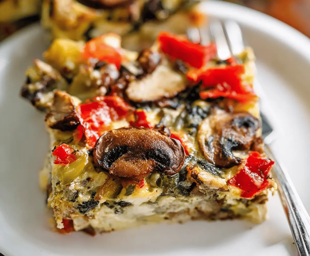 Absolutely! This casserole is very versatile. You can replace the spinach, mushrooms, and bell peppers with any veggies you like, such as zucchini, kale, or even broccoli. Just make sure to sauté them first to avoid excess moisture in the casserole.